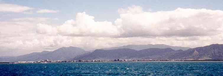 (Heute habe ich den ganzen Tag an diesem Reisebuch geschrieben und bin bis hier her gekommen. Peter sass mit Kopfhörern daneben und hat auch in seinem Büro gearbeitet. Jetzt ist der Tag zuende und ich sehe mir die letzten Nachrichten im Fernsehen an: Eine Meldung unter ferner liefen: Ein Wirbelsturm hat die Stadt Cairns in Australien für Stunden von der Umwelt abgeschnitten. Grosse Überschwemmungen und Sturmschäden! Wie mag jetzt der Sunland CarPark aussehen, wie die Promenade vor Antonios Bistro Carverne an der City Plaza? Was passiert, wenn man auf einem Schnorcheltrip von so einem Wetter überrascht wird? Jetzt ist Wetseason in Australien, Regenzeit. Taifune gehören so dazu, wie bei uns zum Sommer die Gewitter. AL/13.02.1999)