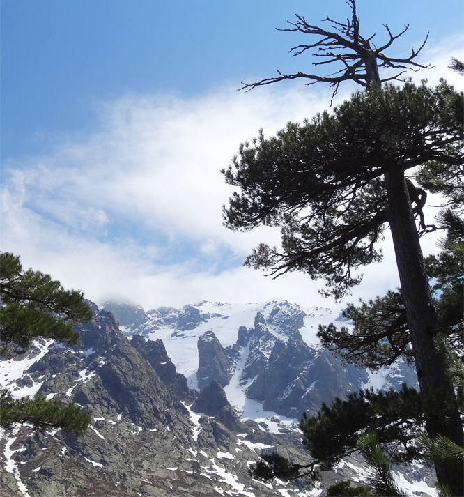 Hier startet die GR20, die bekannteste Wanderroute durch Korsika. Der korsische Weitwanderweg wurde 1972 eingerichtet, gleichzeitig mit dem korsischen Naturpark PNRC. Die Gesamtlänge des GR20 beträgt 210 Kilometer. Dabei sind rund 10.000 Höhenmeter zu überwinden. Wer gut in Form ist, schafft das in 15 Tagesetappen. Mir reichten gestern 63 Höhenmeter von Haute-Asco aus nach Südwesten. Herrliche Aussichten auf die Berge rundherum. Umkehr bei der Position 42,23.8031N; 8,55.121E in einer Höhe von 1480,40 m (GPS-Daten der Camera Sony HX20V).