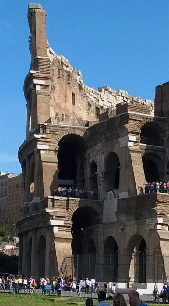 25 Jahre nach dem Mauerfall jetzt also nicht nur auf der Durchreise in Rom, sondern für eine ganze Woche. Acht Übernachtungen mit kargem Frühstück sind in der Innenstadt kaum unter 1.000 Euro zu haben. Das Hotel Everest Inn liegt zentral, die Ausstattung ist gut, der Service freundlich. Direkt vor dem Fenster ein Campanile mit Glockenspiel, unten die laute Via Nazionale. In einer Viertelstunde ist man von hier aus zu Fuss auf dem Capitol. Der Flug Berlin-Rom und zurück kostet pro Person 104 Euro. Die Bahn verlangt für die gleiche Leistung mehr als 500 Euro. Wer benutzt unter solchen Bedingungen die Bahn?