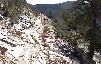 Hermit Trail Auf seiner Nordseite gibt es einen glatten Felsvorsprung, den ich gleich Al Point taufe. Es ist ein markanter Punkt im Gelände, ein vorgeschobener Aussichtspunkt, kaum zwei Quadratmeter gross. Senkrechte Wände fallen von diesem Hügel über 250 Grad nach unten ab. Ein Ausrutscher reicht hier, dann hat man sein Leben im Grand Canyon beendet! Dort lege ich das GPS hin und stelle die Koordinaten und die Höhe fest: Latitude: