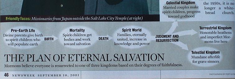 Der Plan der Errettung und von der Ewigkeit (s.o.) beinhaltet ein vorgeburtliches Leben, nach dem Tode folgt die Bewertung, die Verurteilung und eine Auferstehung in drei Varianten. Nur bei grossen, auf Erden erworbenen Verdiensten, erreicht man das Himmelreich. Elf Millionen Menschen bekennen sich derzeitig zu diesem Glauben, die Hälfte davon sind Amerikaner. In Europa sind die Mormonen besonders in Grossbritannien und Skandinavien vertreten. Dank intensiver Missionsarbeit haben sie besonders in der dritten Welt Zulauf und viele neue Anhänger. In der weltweiten Ökumenischen Bewegung arbeiten die Mormonen nicht mit. Das vor allem zeigt ihren 'Alleinvertretungsanspruch' für das Evangelium. Eine Minderheit von 10 bis 20% der Mormonen hat sich 1850 zur Vielehe bekannt. Das war offenbar ein sehr problematischer Tabubruch in einer christlichen Kirche. Deswegen haben sich die Mormonen in einer Proklamation 1890 offiziell von der Polygamie verabschiedet. Ein verschwindend kleiner Teil der Mormonen lebt immer noch in Polygamie, jetzt aber heimlich und rechtswidrig. Diese Praxis wird von Ihre Kirche offiziell nicht mehr unterstützt. Die moralischen Ansprüche der Mormonen kommen deutlich in der Proklamation DIE FAMILIE zum Ausdruck. Die Familie und die soziale Wohlfahrt stehen im Mittelpunkt ihres Lebens. Die Mormonen tolerieren andere Glaubensgemeinschaften, missionieren aber weltweit, um neue Mitglieder zu werben. Von den Sisters erhalte ich die 'Proklamation an die Welt' sogar in deutscher Sprache: Überschrift: DIE FAMILIE. Die Proklamation stammt aus dem Jahre 1995 und der Grundtenor lautet: Die Menschen sind das Abbild Gottes, die Ehe zwischen Mann und Frau ist von Gott verordnet, die Familie steht im Plan des Schöpfers im Mittelpunkt, Kinder zu haben ist das erste Gebot. Die Familie ist von Gott eingerichtet und sie beruht auf den Prinzipien: Glaube, Gebet, Umkehr, Vergebungsbereitschaft, gegenseitige Achtung, Liebe, Mitgefühl, Arbeit und sinnvolle Freizeitgestaltung (in dieser Reihenfolge). Gott hat es so vorgesehen, dass der Vater in Liebe und Rechtschaffenheit über die Familie präsidiert ... Die Mutter ist in erster Linie für das Umsorgen und die Erziehung der Kinder zuständig. Warnend wird darauf hingewiesen, dass jeder für die Verletzung der Bündnisse der Keuschheit, die Misshandlung des Ehepartners oder seiner Kinder und für die Verletzung familiärer Verpflichtungen eines Tages von Gott zur Rechenschaft gezogen wird. Der Zerfall der Familie wird Unheil über einzelne Menschen, die Gemeinwesen und die Nationen bringen, so wie es in alter und neuer Zeit von den Propheten vorhergesagt worden ist. (Wörtliche Zitate) Die Kirche der Mormonen ist straff und zentralistisch gegliedert und organisiert. Der jeweilige Präsident dieser Kirche gilt als Prophet und besitzt in religiösen Dingen die gleiche Unfehlbarkeit wie der Papst der Katholischen Kirche. Dem Präsidenten stehen zwölf Apostel zur Seite, die ihre Nachfolger selber bestimmen. Der ranghöchste Apostel übernimmt nach dem Tode des Präsidenten automatisch dessen Amt. Unter diesem zentralen Führungsgremium gibt es eine vielgliedrige, hierarchische Organisationsstruktur. Viele Gemeindemitglieder sind in die kirchliche Arbeit eingebunden. Die strategische Politik aber liegt fest in den Händen der zentralen Organisation. Nur das oberste Führungsgremium arbeitet hauptamtlich für die Kirche, alle anderen leisten ehrenamtliche Arbeit. Ein Klerus existiert bei den Mormonen nicht. Im Gegenteil. Jedes männliche Mitglied der Kirche wird mit 12 Jahren zum Priester geweiht. Den Frauen dagegen bleibt das Priesteramt in der Kirche verschlossen, sie sind Laien auf Lebenszeit. Sie können und sollen sich aber in vielfältiger Form in der Gemeinde betätigen und sind nicht ausschliesslich auf die Familie fixiert. Die Mormonen gehen inzwischen auch pragmatisch mit der Empfängnisverhütung und der Scheidung um. Seit 1978 können auch Black People Mitglieder dieser Kirche mit allen Rechten und Pflichten werden. |