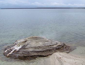 Geysir Es ist 16:26 Uhr und gerade schiesst der Old Faithful Geysir wieder eine riesige Fontäne heissen Wassers in den Himmel. Das letzte Mal passierte es um 14:51 Uhr (s.o.) und ich war etwas näher dran, aber auf der anderen Seite des Geysirs. Die Photos werden nicht besonders geworden sein, heute fehlt der blaue Himmel! Vor zwei Tagen war es in Gardiner noch 34 Grad warm, heute war das Maximum 11 Grad, in der Nacht sechs und Gewitter mit Regen. Am Morgen in Canyon Village Graupelschauer und hier vor einer Stunde Schneetreiben!! Der Sommer ist offenbar vorbei, jedenfalls in dieser Gegend! Der Old Faithful Geysir ist die Hauptattraktion des Yellowstone National Parks. Deswegen ist auch hier die ganze Siedlung um diesen grossen Geysir gruppiert. Es gibt sehr viele Parkplätze und gegen 14:45 Uhr warten vielleicht 600 bis 800 Menschen rund um den Geysir auf sein Spektakel. Es gibt einen Rundweg mit einem Durchmesser von 700 Metern. |