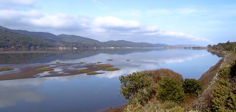 Bild 5 . Das Südende der Tomales Bay, links die pazifische, rechts die noramerikanische Platte