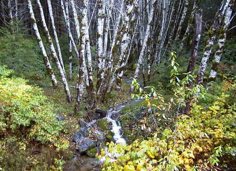Was für eine grossartige Natur, auch und gerade bei Regen und Nebel! Wie sähe sie aus, wenn der Mensch den Rainforest in Ruhe lassen würde? Der Wald wird 'forstwirtschaftlich genutzt', wie man dazu verharmlosend sagt. Im Klartext heisst das: Er wird mindestens alle 60 Jahre abgesägt. Kahlschlag. Ich fahre an solchen Flächen vorbei und die 'Förster' sind auch heute bei der Arbeit. Ständig kommen mir leere Laster entgegen, vor und hinter mir fahren Trucks mit Langholz (langsamer, als ich). Auch Tieflader und Bagger sind unterwegs, die einspurigen Brücken aus Holz müssen instand gesetzt werden. Trotzdem ist wenig Verkehr und alle fahren auf dieser glitschigen Piste vorsichtig. Herrliche Bilder, direkt an dieser Strasse. Ich steige mehrfach aus und fotografiere, aber ich bleibe auf dieser Strasse, jetzt will ich kein Risiko mehr eingehen. Aber natürlich kann man hier auch auf vielen Abzweigungen direkt und tiefer in den Wald fahren und wandern. Wandern im Regenwald ist sehr schwierig, schon nach 10 Metern ist man von unten und von oben nass. Unten vom hohen Unterholz, das auch nass ist, wenn es nicht regnet, und von oben tropft es von den Bäumen oder es regnet. Da bekommt man einen Eindruck davon, was es bedeutet, sich 100 km Luftlinie durch diesen Rainforest zu kämpfen! Für die knapp 60 Kilometer brauche ich etwas mehr als zwei Stunden, dann ist das Abenteuer überstanden. Ich lande in dem kleinen Ort Mesachie Lake.  |