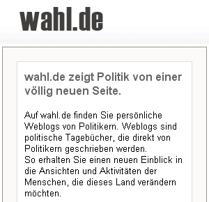 im Internet Auf www.wahl.de finde ich schnell meinen Wahlkreis und die Blogs der Kandidaten, die ich in der Wahlkabine auf dem Wahlzettel wiedersehen werde. Es sind neun Kandidaten für Berlin Mitte. In der Wahlkabine sind es noch ein paar mehr, bei wahl.de machen nicht alle mit. Allen Kandidaten habe ich am 8. August die gleiche Frage gestellt: Was
