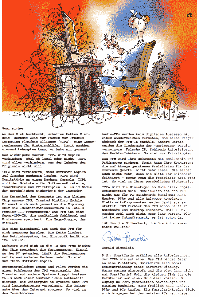 Diskussionen über den Leitartikel zu TCPA c't 2003, Heft 3, Seite 10