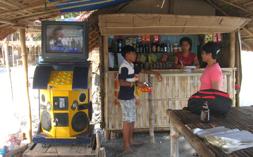Holy Week, die Tage vor Ostern werden auf den Philippinen als die höchsten kirchlichen Feiertage gefeiert: Der heilige Donnerstag, der gute Freitag, der schwarze Sonnabend und dann Ostersonntag. Viele Urlauber, die Resorts sind belegt. Viele Menschen am Strand, Tag und Nacht wird gebadet, denn das Wasser ist um 30 Grad warm, Luft 33 und schwül. Das hält man am besten im Südchinesischen Meer aus. Ist man nach einer Stunde etwas ausgekühlt, kann man sich im Swimming Pool wieder aufwärmen: Eine mindestens 35 Grad warme Badewanne. Die einfachsten 'Hotels' bestehen aus einem Bambuszaun mit Palmdach, Bambusbetten und einer Garküche: Hotel und Restaurant, bezahlbar fast für jeden Philippino. An den Feiertagen viele Leute am Strand und viel Musik. Am schlimmsten sind die Karaoke Maschinen, die überall am Strand unter Palmdächern stehen. Für 5 Peso kann man seinen Lieblingssong aus mehr als 4.000 Titeln auswählen. Ein Video wird gezeigt, der Songtext wird eingeblendet und so kann der Song über grosse Lautsprecher mitgesungen werden. Je lauter und je falscher gesungen wird, umso mehr Fun. Das ist schwere Kost für europäische Ohren, aber die Philippinos lieben Karaoke über alles. Die ganze Nacht lang wird in jeder Stimmlage mit Inbrunst gesungen, solange man noch 5 Peso hat. Das ist für hiesige Verhältnisse teuer, denn für 30 Peso kann man in jeder Garküche schon ein Dinner haben: Reis, Fisch, gegrillte Hühnerfüsse, Nudeln, Meat- und Fish Balls. Aber Gott sei Dank ist das alles ein paar hundert Meter von meinem Bett weg, es ist auszuhalten.