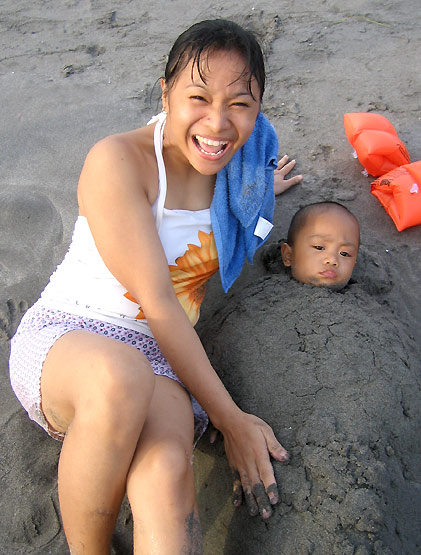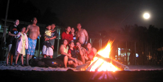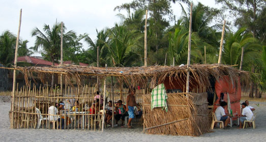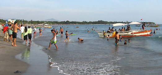 Philippinos lassen sich gerne fotografieren. Überall, wo man mit der Camera auftaucht, wird man gleich aufgefordert: 'Bitte mich auch fotografieren!' So war das auch am Strand von Iba. Sehr viele Menschen haben hier über die Osterfeiertage Urlaub gemacht. Immer wenn ich die Camera aus der Tasche zog, stellte man sich am Strand gleich für ein Gruppenbild auf und lud mich zum Essen ein! Nur wenige Ausländer machen hier Urlaub, die Philippinos sind in Iba unter sich. Als Weisser fällt man unter solchen Umständen an einem gut besuchten Urlaubsstrand natürlich auf. Die Leute wollen möglichst mit dem Ausländer reden. Sie möchten wissen, wie es ihm hier gefällt und sie reagieren hoch erfreut, wenn man die Wasserqualität, die schöne, laute Musik am Strand (!) und das gute Essen in den Garküchen lobt. Die Fotos wollen sie nicht sehen, obwohl sie schon wissen, dass das mit der Digitalcamera geht. Sie sind zu höflich, um so eine einfache Bitte zu äussern. Ihr Verhalten ist durchaus als Gastfreundschaft anzusehen: Sie möchten dem Fremden einen Gefallen tun, damit er einen guten Eindruck von ihrem Land, ihrer Gegend, gewinnt. Das ist es, was ich an den Philippines so besonders schätze: Die grosse, ehrliche und offene Freundlichkeit der Menschen, gepaart mit höflicher Zurückhaltung.