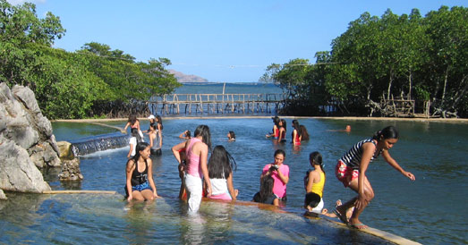 Was unternimmt man in Coron? Wenn man sich nicht im Handbuch von Jens Peters informiert hat, macht man einen Spaziergang durch diese kleine Stadt oder fragt im nächsten Dive Shop nach Events. Das Information Center von Coron war immer geschlossen, wenn wir daran vorbei gingen. Wir informierten uns am ersten Tag, spazierten durch die Stadt und gingen am späten Nachmittag in den Makinit Hot Springs baden. Das Wasser ist im kleinsten Becken 41 Grad warm, da ist es gut, dass man sich nebenan in der offenen See bei 27 bis 28 Grad abkühlen kann. Die Hauptaktivitäten der (höchstens 100) Touristen in Coron sind Tauchen, Schnorcheln und Schwimmen. Die Wracks des II. Weltkrieges, japanische Schiffe und Flugzeuge, sind für die Diver eine besondere Attraktion. Man kann sich aber auch an einem einsamen Strand absetzen lassen, Robinson spielen, solange man das aushält, und wird dann auch wieder in die Zivilisation zurück befördert. Immer werden dazu Boote gebraucht und die kann man über jede Lodge oder direkt am Pier beim Markt mieten. Der Standardpreis für eine Tagestour mit einer Banca beträgt 1.500 Peso. Dafür wird man in der näheren Umgebung von Coron zu Tauch- und Schnorchelplätzen gefahren. Abfahrt nach dem Frühstück direkt vom Balkon der L&M P Sea Lodge, Rückkehr spätestens bei Sonnenuntergang. Will man weiter weg fahren, erhöhen sich die Preise drastisch, obwohl nur ein paar Liter Diesel mehr verbraucht werden. Hier hilft nur beharrliches Handeln, denn es geht ausschliesslich um die Profitmaximierung. Wir haben dabei eine besonders schöne Story erlebt, inzwischen ist sie auch aufgeschrieben.