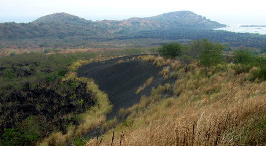 Der Lake Taal liegt hier praktisch vor unserer Haustür, gegenüber auf Luzon, Luftlinie nur 50 Kilometer. Der See liegt in einer Caldera, fast mit den Ausmassen des Yellowstone Park. Im See eine Vulkaninsel mit einem kleinen, aktiven Vulkan. Die letzten Evakuierungen gab es vor zwei Monaten ...! Am Sonntag (13. März 2005) setzten wir früh mit der Fähre nach Batangas über und fuhren mit Jeepneys und Tricycle über Bauan, Taal und Lemery nach San Nicolas. Wir suchten eine Unterkunft und ein Boot und fanden beides im Beach Resort Villa Anna. Die Bambushütte schützte vor Regen und es gab darin zwei grosse Matratzen. Den obligaten Tabo mitgerechnet, war das aber der gesamte Komfort, den wir uns für 1.000 Peso in der ersten Nacht leisteten. Nur 100 Peso können wir runterhandeln. Um mit einer Banca zur Vulkaninsel zu fahren, mussten wir unsere ganze Überredungskunst aufbringen. Dann wurden wir wortkarg und unwillig für 2.000 Peso mit einem Boot zur Vulkaninsel geschippert. Die Landschaft, der Aufstieg auf einen Kraterrand und die Aussicht hinunter auf den Lake Taal entschädigten uns für die seltsamen Umstände. Leider war auch das Wetter nicht für Bilderbuchfotos geeignet, es gibt aber trotzdem faszinierende Bilder.