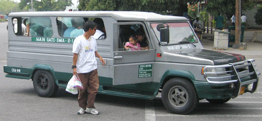 Mit einem speziellen Clark Jeepney fahre ich zum Main Gate zurück. So eine Fahrt kann man auch als Sightseeing Tour durch den ehemaligen US-Stützpunkt ansehen. Was mich am meisten an Clark Special beeindruckt hat sind die herrlichen grossen Bäume mit der riesigen Schirmkrone. Die Reste des Regenwaldes, der hier vor 100 Jahren noch Dschungel und Heimat der Aeta war. Iba, 01. April 2005, 12:17 Position Al Latitude: