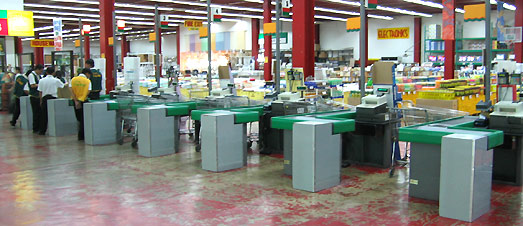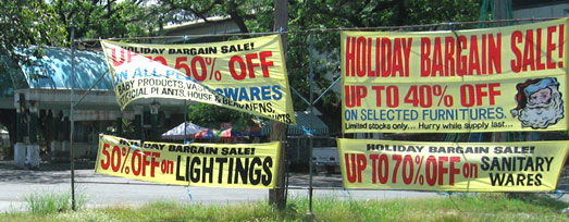 Ich fahre von meinem Hotel Premiere mit einem Jeepney bis zum Friendship Gate. Dort steige ich in einen anderen Jeepney um, der in das Clark Center fährt, die ehemalige amerikanische Kleinstadt. Hier haben sich viele Firmen angesiedelt, Büro- und Produktionsflächen sind im Überfluss vorhanden und kosten kaum Miete. Villen und Wohnungen sind zu vermieten und zu verkaufen, vieles verkommt, weil für so viel Raum und Fläche auch nicht annähernd genug Kunden vorhanden sind. Das grosse Flugfeld wird privat genutzt. Wer zum Pinatubo fliegen will, kann hier eine Maschine chartern, schon mit 100 Dollar ist man dabei. Die riesigen Super Markets in denen man sich nach Amerika versetzt fühlt, wurden kurzerhand zu Duty Free Shops umfunktioniert. Grosse Schilder bieten Discount auf Weihnachtsartikel und Möbel an. Die Preise sind in US-Dollar ausgeschildert, Kurs 1:54. Ein anderer Duty Free Shop bietet aber einen Kurs von 1:45 an, um Kunden anzulocken. Aber von den 15 Kassen ist jeweils nur eine in Betrieb. Nicht nur die Kunden fehlen, vor allen Dingen fehlt die Kaufkraft. Die wenigen Kunden sind Philippinos. Wo sollen Sie das Geld her haben? Trotzdem ist das Angebot so riesig, dass man in den endlosen Hallen die Übersicht verliert. Polizei kontrolliert den Eingang. In einem Duty Free muss ich meine Camera deponieren: Fotografieren verboten. In einem anderen Shop gefällt dem Polizisten am Eingang mein Hut nicht, ich muss den Hut in Verwahrung geben. Ich will kein Spülmittel, keine Handtücher, keinen Videorecorder und auch kein Schlafzimmer im Empire Style kaufen. Mich interessieren Digitalcameras und das Zubehör dafür. Nachdem ich vielleicht fünf der riesigen Shops durchkämmt habe, gebe ich auf: Mannshohe chinesische Vasen kann ich in grosser Auswahl kaufen (4.500 Peso), aber es ist nicht eine Digitalcamera im Angebot.