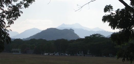 An der Front des riesigen Paradeplatzes, der mit herrlichen, grossen Bäumen umsäumt ist, residiert das Clark Museum. Der Polizist, der hier als einzige Amtsperson zuständig ist, ist kaum 19 Jahre alt und er versteht English nur schlecht. Er will mich unbedingt in die Konferenz schicken, die im ersten Stock stattfindet. Als er begriffen hat, dass ich das Museum besichtigen will, nimmt er mir als erstes die Camera ab. Fotografieren verboten. Dann habe ich 30 Peso zu zahlen und erst als auch das geschafft ist, wird mit vielen Lichtschaltern das sehr interessante Museum in Betrieb genommen. Die Anwesenheit der Amerikaner geht in diesem Museum bis auf das Jahr 1902 zurück. Damals lebten in dem gesamten Gebiet die Aeta, die Ureinwohner, die von den Amerikanern Negritos genannt werden. Hier sind ihre Werkzeuge und Waffen ausgestellt. Es sind Blasrohre, Pfeil und Bogen, die man jetzt manchmal auf der Strasse und am Strand von Aetas als authentisches Souvenir angeboten bekommt. Sie lebten in dem Regenwald, der vom Abacan River bis zum Massiv des Pinatubo reichte. In hundert Jahre haben es die Weissen geschafft, dass kein Regenwald mehr existiert. Heute schlafen einige Aeta zerlumpt mit ihren Kindern als Bettler unter den Leuchtreklamen der Field Avenue in Angeles. Ein wirklich interessantes Museum mit historischen Fotos und vielen Artefakten. Hier hängen auch ein paar Bilder vom Ausbruch des Pinatubo die erahnen lassen, welche gewaltigen Kräfte dabei entfesselt wurden. Aber fotografieren ist verboten und es gibt kein Stück Papier, das über das Museum oder die Historie der Clark Air Base informiert. Warum? Das braucht man den jungen Polizisten nicht erst zu fragen, er begreift die Fragestellung nicht. Es steht doch alles völlig eindeutig auf diesem grossen Schild: Fotografieren im Inneren des Gebäudes verboten. Was ist daran unklar?