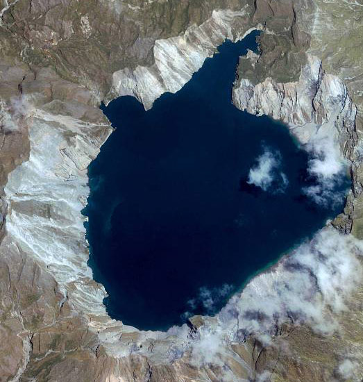 Ein Satellitenfoto des Kraters - leider ohne Datum - im Internet gefunden: Nord-Süd-Ausrichtung. Man sieht deutlich, dass der Krater heute anders aussieht. Susanne hat nachgeforscht und herausgefunden: Dieses Bild wurde vom Space Imaging's IKONOS Satellit am 06. März 2001 aufgenommen. Weitere Links zu Mt. Pinatubo: Die Pinatubo Story: http://www.ngdc.noaa.gov Bilder des Mt. Pinatubo: http://encarta.msn.com Bilder von Vulkanen: http://www.malapascua.de Angeles, 03. April 2005, 7:23 Short