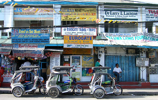 Vor dem Eingang des Liberty Duty Free, dessen Spezialität Möbel und Teppiche sind, lädt mich Bill zu einem Kaffee ein. Er hat hier mit seiner Frau eine kleine Garküche aufgebaut und für 55 Peso bekomme ich einen guten Kaffee und ein Yadask? – einen Döner aus wirklichem Rind und Hammelfleisch, am Spiess und mit Gas gegrillt, wie in Arabien oder Kreuzberg. 'Wo kommst Du her? Ah, aus Deutschland. Hitler, das war ein Deutscher! Er hat mit einer Privatarmee angefangen und sich damit bis zum Präsident hoch gekämpft. Kleine Jungen hat er in den Krieg geschickt!' Wir unterhalten uns eine Weile. 'Ja, ich weiss, dass Italien und die Schweiz nicht weit weg von Deutschland sind. Poland, wo liegt Poland, das ist doch bei Afghanistan? Die Hauptstadt von Deutschland ist Berlin, da kommst Du her!? Und in Europa gibt es noch Paris und London, aber wo liegt Kabul, das ist der Irak … oder?'. Er liebt die Amerikaner nicht, weil sie hier alles stehen und liegen gelassen haben. 'Sie hatten Angst, die verwüstete Air Base nach dem Ausbruch des Pinatubo wieder aufzubauen. Das hätte zuviel Geld gekostet, da sind sie lieber abgehauen. Bush ist zu aggressiv. Er will alle kleinen Staaten beherrschen, an die grossen traut er sich nicht ran. Deutschland und Amerika stehen wegen dem Irak auf Kriegsfuss. Werdet Ihr gegeneinander Krieg führen?' Ich kann ihn beruhigen, so weit wird es nicht kommen, beide brauchen sich gegenseitig.