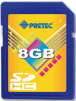 Pretec 8 GB SD-HC card has a 'sampling price' of $299 and should be in